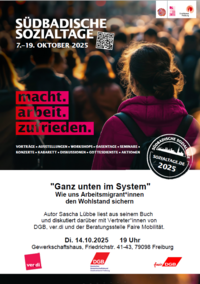 Veranstaltung im Rahmen der Südbadischen Sozialtage 2025 der Katholischen Betriebsseelsorge zusammen mit DGB-Stadtverband Freiburg, ver.di Freiburg und Faire Mobilität