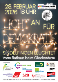 Das Bündnis Buntes Sindelfingen und die Omas gegen Rechts Sindelfingen laden ein zum: Lichtermeer am 28.2.2026 – Wir stehen für unsere Demokratie