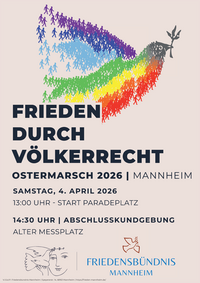 Der Mannheimer Ostermarsch 2026 findet statt am Ostersamstag, den 4. April um 13 Uhr.