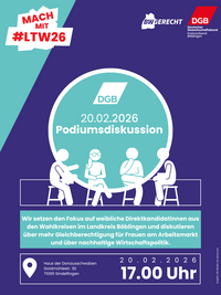 Die demokratischen Parteien in den beiden Wahlkreisen senden aus ihrer Mitte vielerorts Frauen in den Wettkampf um die Landtagsmandate. Eine Landtagswahl am 8. März – am internationalen Frauentag – ist für uns Gewerkschafter*innen Anlass diese starken Frauen kennenzulernen. Wir fragen uns, würde es mehr Gleichberechtigung der Geschlechter mit ihnen geben. Und um den Wirtschaftsstandort Baden-Württemberg zu verteidigen, braucht es mutige Entscheidungen. Wir hören genau hin, ob mit diesen Politikerinnen Mut und Hoffnung in eine wirtschaftlich erfolgreiche & gerechtere Zukunft möglich ist. Mit dabei: