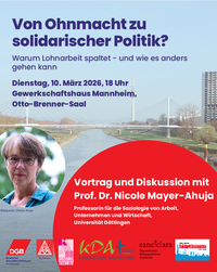 Dienstag, 10. März 2026, 18 Uhr Gewerkschaftshaus Mannheim, Otto-Brenner-Saal (Eingang Carl-Garnier-Ufer)