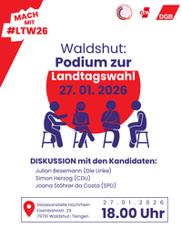 Am 8. März 2026 wird in Baden-Württemberg ein neuer Landtag gewählt. Als Gewerkschaften haben wir da einen klaren Blick: Wir wollen ein Baden-Württemberg mit einer starken, nachhaltigen Wirtschaft, mit guten Arbeitsbedingungen und einer verlässlichen, gerecht finanzierten Daseinsvorsorge – von Bildung über Wohnen und Gesundheit bis zur Mobilität. Wie kann das gelingen? Mit klarem politischen Willen, Investitionen und einer Landespolitik, die die Menschen in den Mittelpunkt stellt. Baden-Württemberg ist wirtschaftlich stark. Jetzt muss es auch sozial gerecht werden.