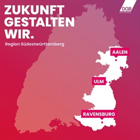Der Deutsche Gewerkschaftsbund ist die politische Stimme unserer 8 Mitgliedsgewerkschaften IG Metall, ver.di, IG BCE, GEW, IG BAU, NGG, GdP und EVG. Zusammen sind wir mehr als die Summe unserer Teile. Als Einheitsgewerkschaft ist der DGB politisch unabhängig, aber nicht neutral. Als DGB-Region vertreten wir die Interessen der Gewerkschaftsmitglieder und abhängig Beschäftigten gegenüber Landkreisen, Kommunen, Parteien, Kammern und Verbänden. Doch unsere 3 Standorte in Ulm (Regionssitz), Aalen und Ravensburg sind wir nah an den Bedürfnissen unserer Mitglieder. Gemeinsam die Arbeits-und Lebensbedingungen der Beschäftigten zu verbessern ist unser Auftrag.